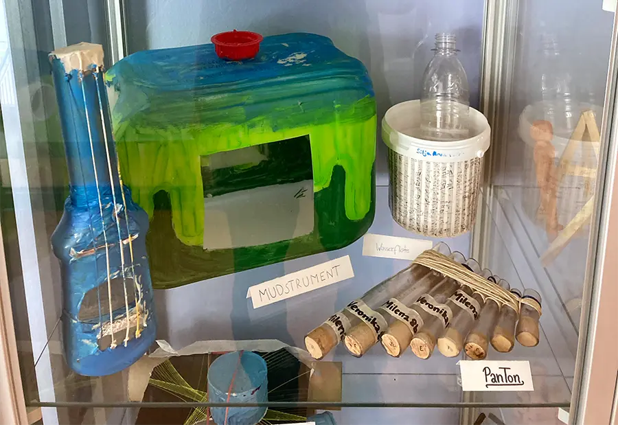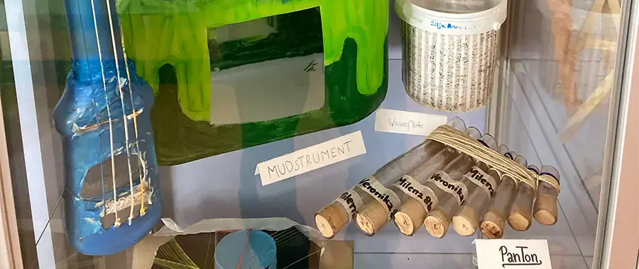 Ausgehend von selbstgewählten Materialien und deren Verarbeitung zu Kostümen entwickeln Schüler*innen Konzepte für eine Botschaft oder Aussage aus ihrer Lebenswelt (z.B. Recherche zu Müllproduktion in der Schule).